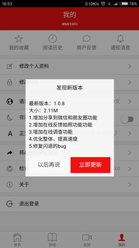当发布新版的APP后,客户端会提示在线升级,一键升级
